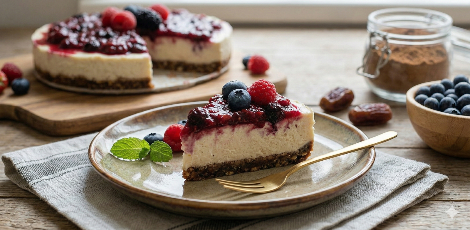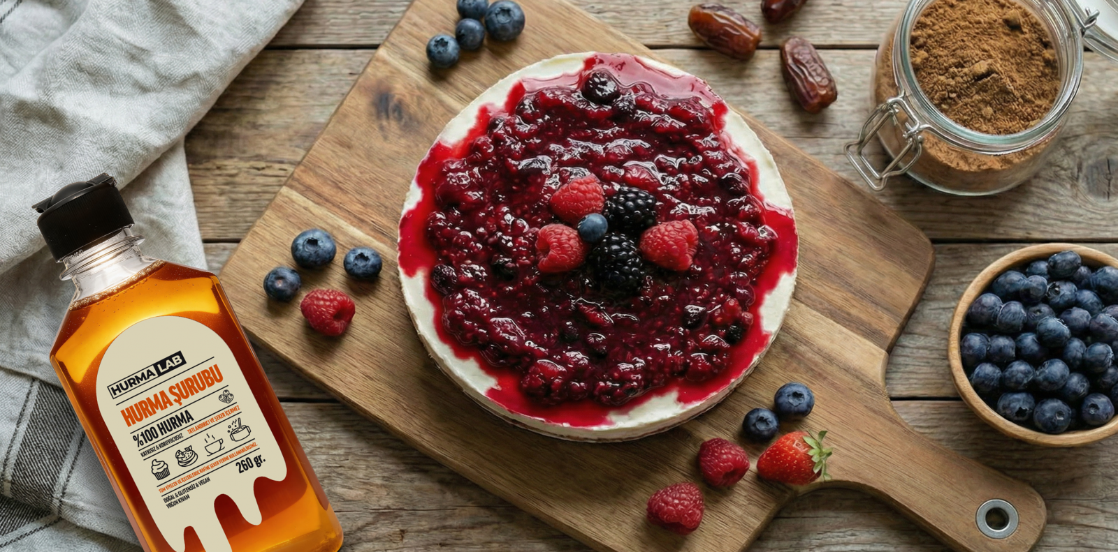 Klasik cheesecake’in o sevilen kremamsı dokusu, HURMALAB ürünlerinin doğal tatlılığı ve orman meyvelerinin ferahlatıcı aromasıyla birleştiğinde ortaya çıkan sonuç: Sağlıklı, göz alıcı ve lezzet dolu bir tatlı!