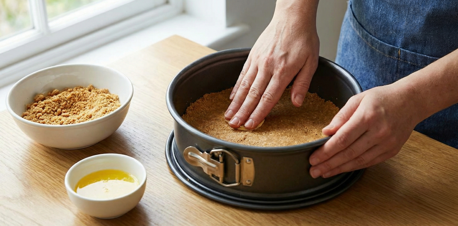1. Tabanı Hazırlama: Yulaflı bisküvileri mutfak robotundan geçirerek un haline getirin. Eritilmiş tereyağını ekleyip iyice karıştırın. Yağlı kağıt serili 20 cm'lik kelepçeli kalıbın tabanına bu karışımı dökün. Bir bardağın tabanı veya kaşık yardımıyla iyice bastırarak düz bir taban oluşturun. Krema hazırlanana kadar buzdolabında bekletin.