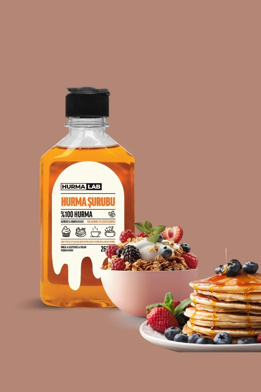 Hurma şurubu (hurma suyu), yalnızca hurmalardan elde edilen doğal ve sağlıklı bir tatlandırıcıdır. Rafine şeker, katkı maddesi veya koruyucu içermez. Kendine özgü meyvemsiliğiyle çaydan kahveye, pankekten smoothielere kadar her tarifte güvenle kullanılabilir. Vegan ve glutensiz olması sayesinde her yaşa ve her diyete uygundur. Hurmanın yoğun lezzetini ve besleyici gücünü sofranıza taşıyan bu doğal şurup, hem mutfağınızın hem de sağlıklı yaşam rutininizin vazgeçilmezi olacak.